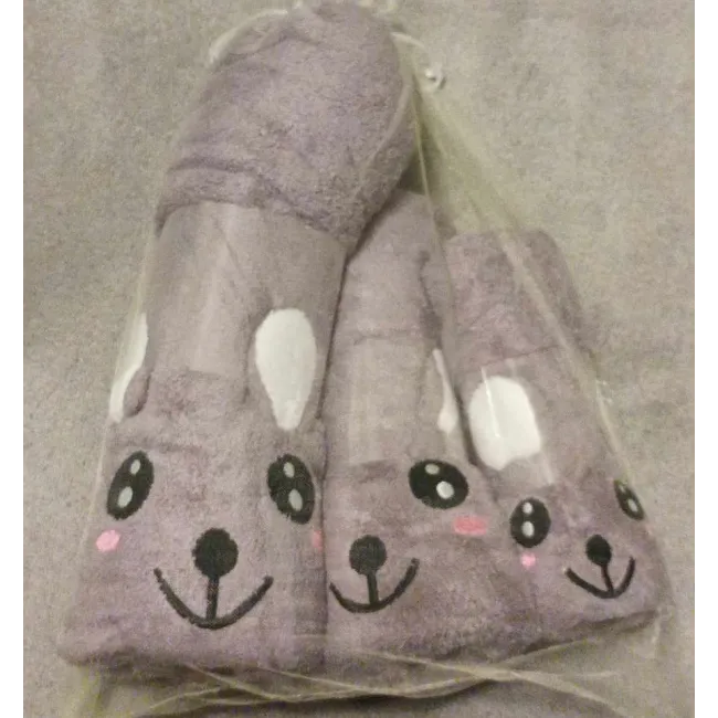 Uroczy komplet ręczników dziecięcych z mikrofibry w kolorze brudnego fioletu to połączenie funkcjonalności, miękkości i radosnego designu. Zestaw zawiera trzy ręczniki w rozmiarach 70x140 cm, 50x100 cm i 25x75 cm, idealne do kąpieli, codziennej pielęgnacji, na basen lub w podróż. Wykonane z miękkiej, szybkoschnącej mikrofibry są delikatne dla wrażliwej skóry dziecka i doskonale chłoną wodę. Urocze hafty zwierzątek sprawiają, że każda kąpiel staje się przyjemnością. To praktyczny i piękny pomysł na prezent dla malucha.