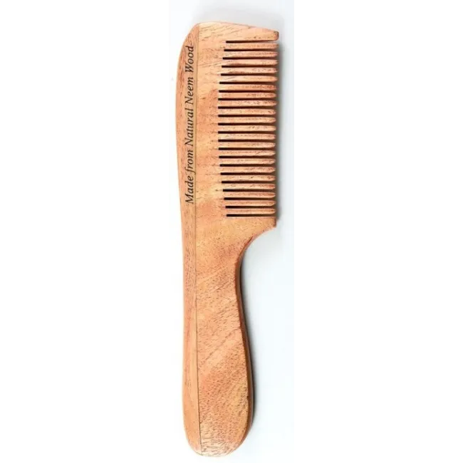 Grzebień z drzewa neem to naturalny produkt do codziennej pielęgnacji włosów. Gładko wyprofilowane zęby nie niszczą i nie łamią włosów, a samo drewno neem znane jest ze swoich właściwości wzmacniających i pielęgnujących. Grzebień pobudza wzrost włosów, pomaga ograniczyć wypadanie i łupież, nie elektryzuje i wygładza pasma. Doskonały dla włosów cienkich, grubych, prostych i kręconych. Wykonany z miodli indyjskiej. Wymiary: 17,5 × 4,5 cm.