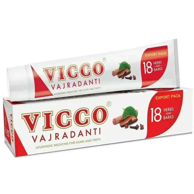 Pasta do zębów Vicco Vajradanti 200 ml to klasyczna pasta ajurwedyjska stworzona na bazie tradycyjnej indyjskiej receptury. Jej skład opiera się na 20 starannie dobranych ziołach, korze drzew i wyciągach kwiatowych, które wspierają naturalną higienę i pielęgnację jamy ustnej.