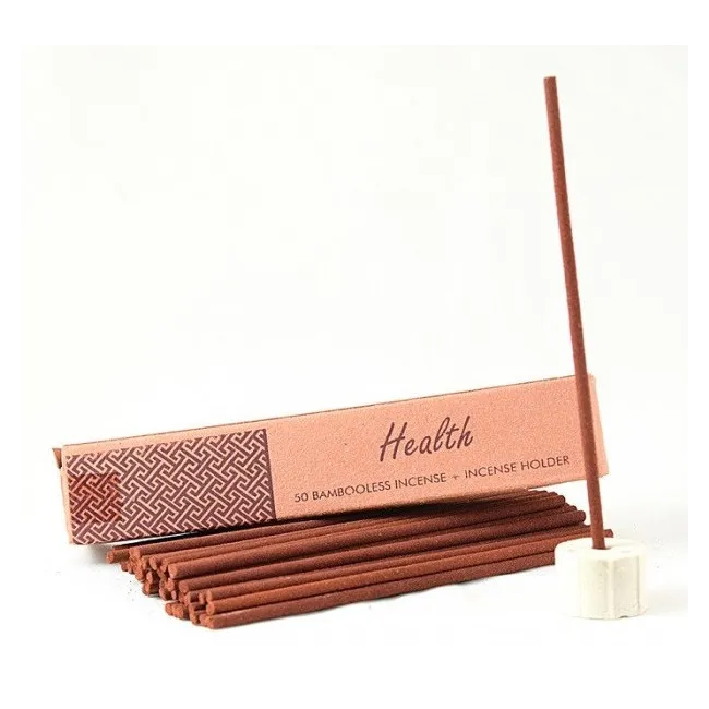 Naturalne, bezbambusowe kadzidełka HEALTH marki Song of India. Ręcznie tworzone z żywic, olejków eterycznych i drewna sandałowego. Ciepły, drzewny aromat idealny do relaksu, medytacji i oczyszczania przestrzeni. W zestawie 50 sztuk + stojak. Czas palenia ok. 30 minut.