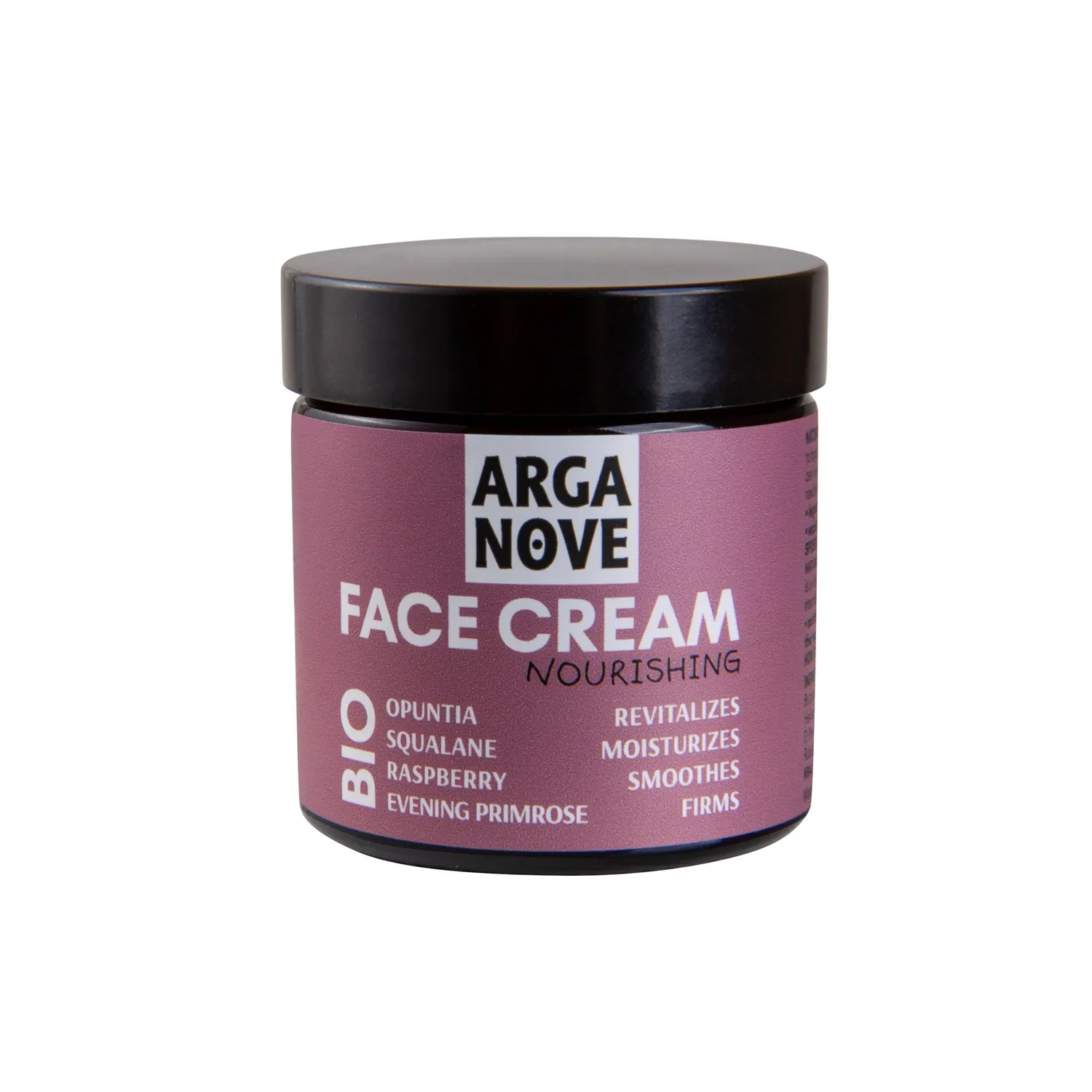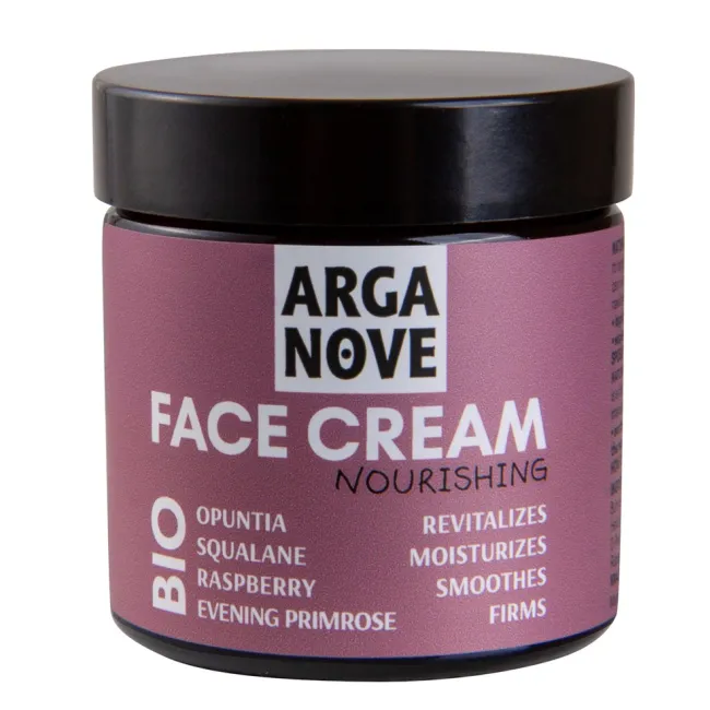 Odżywczy krem do twarzy BIO Wiesiołek • Opuncja • Malina to naturalna pielęgnacja dla cery wymagającej regeneracji i intensywnego odżywienia. Zawiera tłoczone na zimno oleje: z opuncji figowej, arganu, awokado, wiesiołka i malin, masło shea oraz bio skwalan z trzciny cukrowej. Wzmacnia barierę hydrolipidową, łagodzi podrażnienia, nawilża i przywraca elastyczność skóry. Dzięki bogactwu antyoksydantów chroni przed wolnymi rodnikami i spowalnia proces starzenia. Regularne stosowanie nadaje cerze miękkość, jędrność i zdrowy blask.