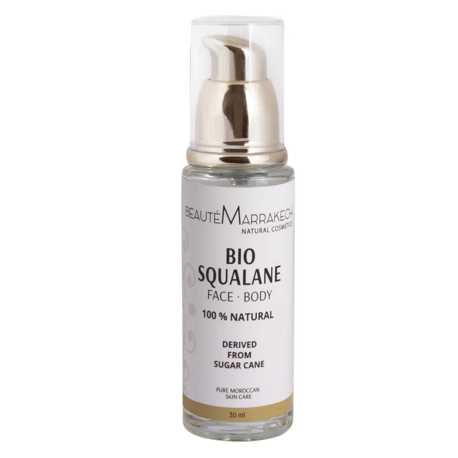 Bio skwalan z trzciny cukrowej marki Beaute Marrakech to naturalny, ekologiczny kosmetyk o wyjątkowo szerokim zastosowaniu. Może być stosowany do pielęgnacji twarzy, okolic oczu, ciała, dłoni oraz włosów. Jest to najczystsza forma skwalanu – w pełni roślinna i przyjazna dla skóry.