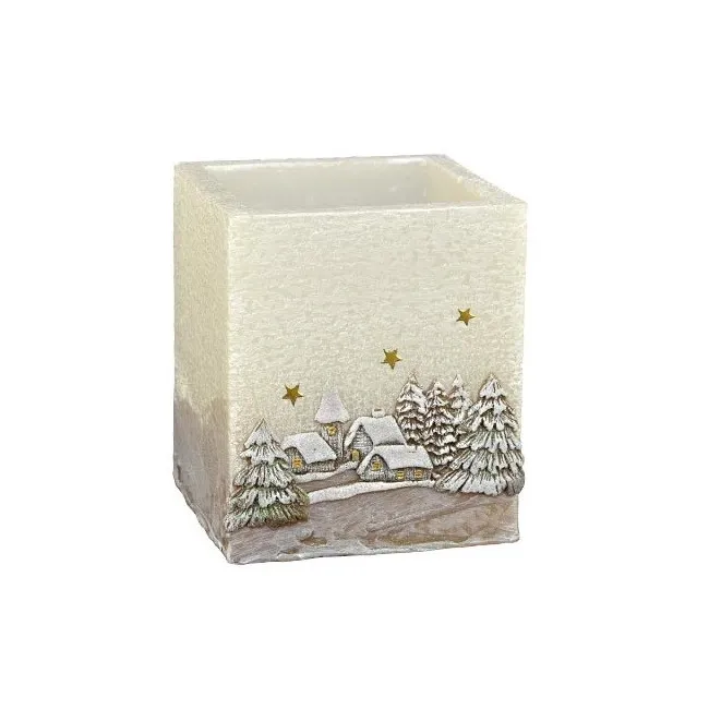 ADPALLampion Zimowy Sen Adpal to elegancka świeca dekoracyjna w kształcie prostopadłościanu, która wnosi do wnętrza ciepło, spokój i zimowy nastrój. Wykonana z wysokiej jakości wosku w odcieniach bieli i brązu, idealnie komponuje się z klasycznymi i rustykalnymi aranżacjami. Lampion pięknie rozprasza światło, tworząc przytulny klimat w domu, restauracji lub salonie SPA. Wymiary: 115 x 100 x 100 mm, waga 440 g. Doskonały pomysł na prezent lub świąteczną ozdobę wnętrza.