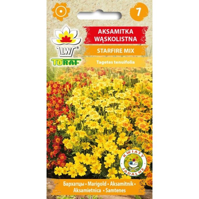 Roślina jednoroczna silnie rozkrzewiona wysokości 20-30 cm, z drobnymi ząbkowanymi liśćmi i licznymi kwiatami średnicy 1,5 cm. Mieszanka kwiatów w odcieniach żółtego, pomarańczowego i czerwonego. Kwitnie bardzo obficie i równomiernie od lipca do mrozów. Doskonała na rabaty, obwódki, kwietniki, do pojemników i gazonów. Udaje się na każdej glebie ogrodowej. Wysiew w kwietniu pod osłony lub w maju wprost do gruntu.