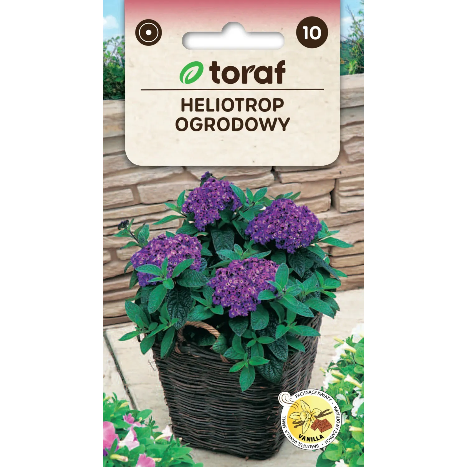 Heliotrop ogrodowy to urocza roślina jednoroczna osiągająca wysokość 40–50 cm, wyróżniająca się intensywnie niebieskimi kwiatami o wyjątkowym, słodkim zapachu waniliowo-czekoladowym. Aromat przyciąga motyle i owady zapylające, a jednocześnie pomaga odstraszać komary i meszki. Roślina doskonale sprawdza się w donicach, na balkonach, tarasach oraz w ogrodach. Preferuje stanowiska słoneczne oraz żyzne, dobrze przepuszczalne podłoże. Kwiaty pojawiają się od lipca do października, tworząc efektowną i pachnącą dekorację.