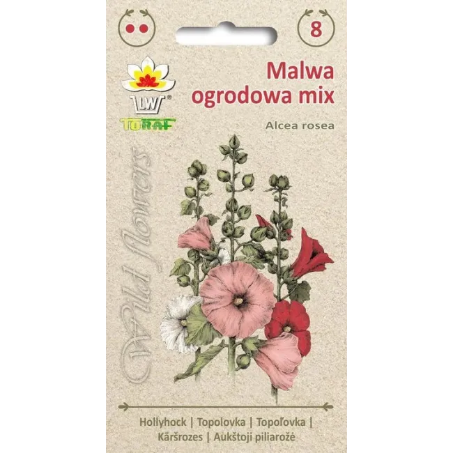 Malwa ogrodowa MIX (Alcea rosea) to efektowna, staropolska roślina ozdobna o wysokim wzroście i dużych, otwartych kwiatach w różnych kolorach. Jest krótkotrwałą byliną, która kwitnie obficie już od pierwszego roku po wysiewie, stanowiąc doskonałą ozdobę ogrodów wiejskich, rabat przy płotach oraz ścianach budynków. Jej kwiaty są wyjątkowo atrakcyjne dla owadów zapylających. Roślina ma niewielkie wymagania uprawowe i najlepiej rośnie na stanowiskach słonecznych. Doskonale sprawdzi się zarówno w ogrodach ozdobnych, jak i naturalistycznych. Nasiona renomowanego producenta Toraf gwarantują wysoką jakość i dobrą zdolność kiełkowania.