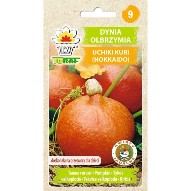 Uchiki Kuri, (synonim Hokkaido), to japońska odmiana dynia charakteryzująca się jadalną skórką, wczesnym okresem dojrzewania i wyjątkowo przyjemnym smakiem przypominającym pieczone kasztany. Owoce o kształcie dużej cebuli osiągają wagę około 1,5 kg. Nadaję się do długiego przechowywania. Dzięki zwartej bezwłóknistej konsystencji świetnie nadaje się do duszenia, gotowania, sałatek, a także grillowania, a dzięki znacznym przyrostą pędów także do obsadzania płotów i altan. Jest bardzo zdrowa ze względu na wysoką zawartość prowitaminy A, wyższą niż w marchwi. Siew IV-V nasiona położyć płasko i wcisnąć lekko w ziemie. Temp. kiełkowania 15 - 25°C.