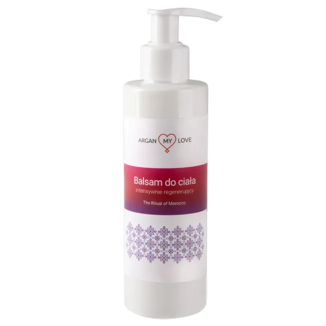 Intensywnie regenerujący balsam do ciała ARGAN MY LOVE „The Ritual of Morocco” to naturalna pielęgnacja dla skóry suchej i wymagającej odżywienia. Bogata formuła z masłem shea, olejem arganowym i pantenolem zapewnia długotrwałe nawilżenie, wygładzenie i komfort. Balsam szybko się wchłania, nie pozostawiając tłustej warstwy, a jego orientalny, kadzidłowo-kwiatowy zapach tworzy wyjątkowy rytuał pielęgnacyjny. Regularne stosowanie pomaga przywrócić skórze miękkość, elastyczność i zdrowy wygląd. Odpowiedni dla kobiet i mężczyzn.