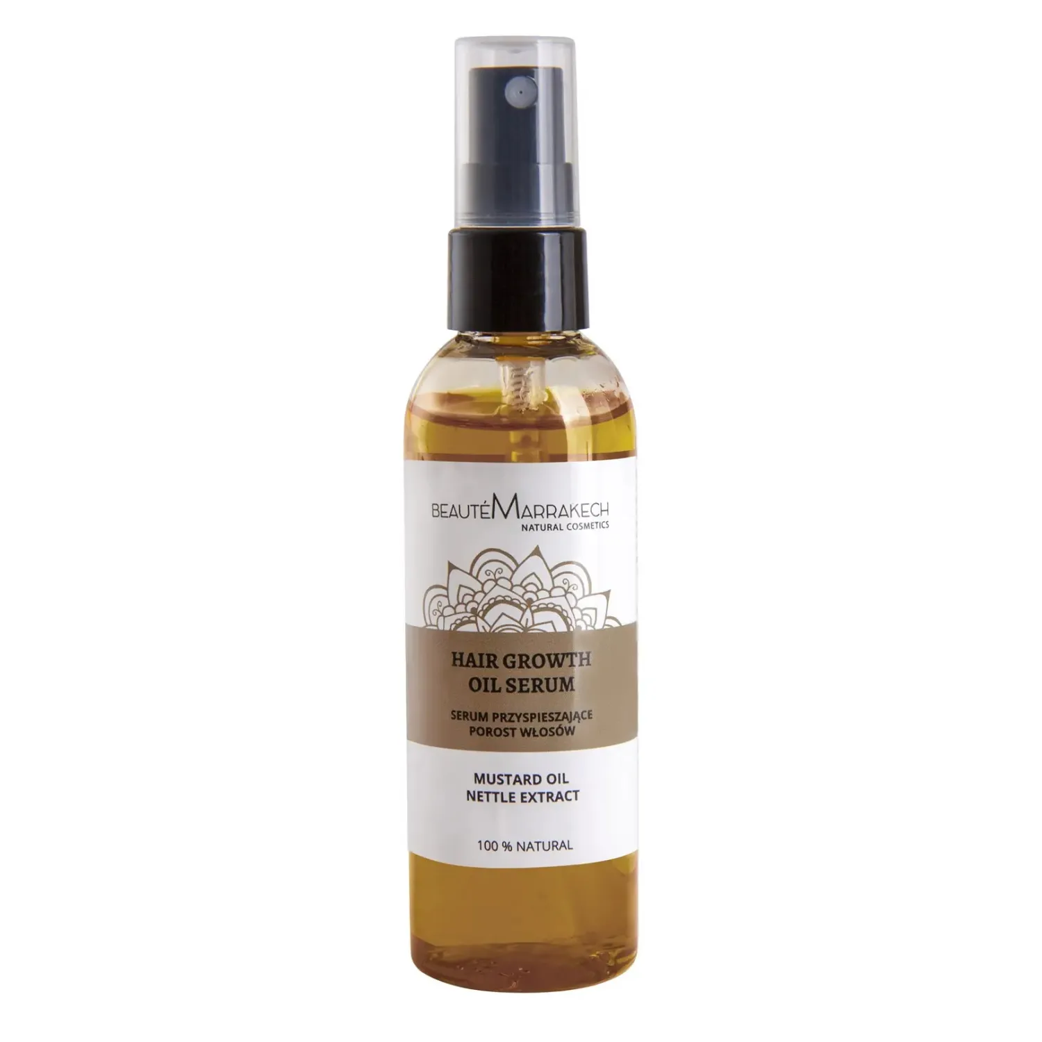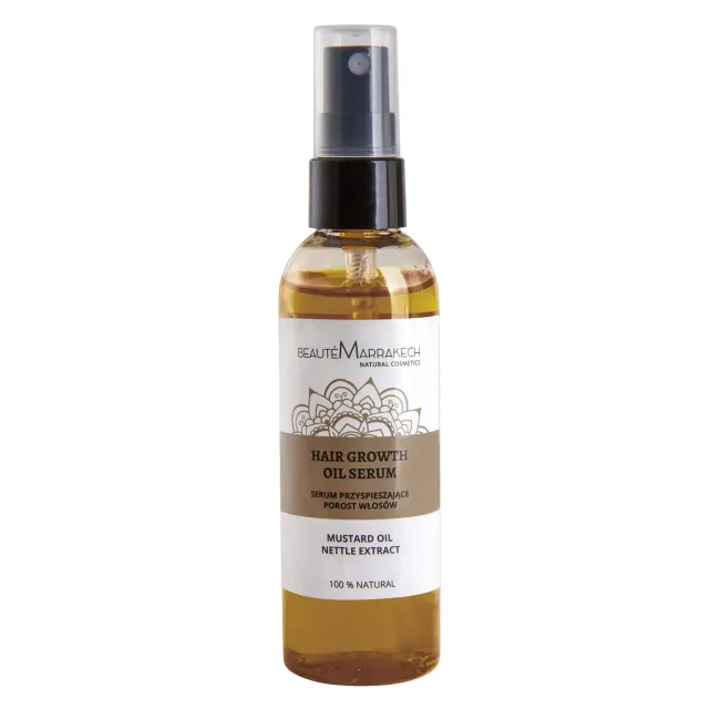 Naturalna wcierka na porost włosów oparta na nierafinowanym oleju z gorczycy białej. Serum musztardowe BEAUTE MARRAKECH działa rozgrzewająco, wspierając mikrokrążenie skóry głowy i poprawiając jej kondycję. Regularne stosowanie pomaga wzmocnić włosy u nasady, ograniczyć ich wypadanie oraz wspiera zdrowy wzrost nowych włosów. Olejowa formuła odżywia skórę głowy i włosy, przywracając im miękkość, blask i elastyczność. Może być stosowane zarówno jako wcierka, jak i olejek do pielęgnacji na całej długości włosów. Idealne dla osób, które chcą naturalnie wzmocnić włosy i poprawić ich wygląd.
