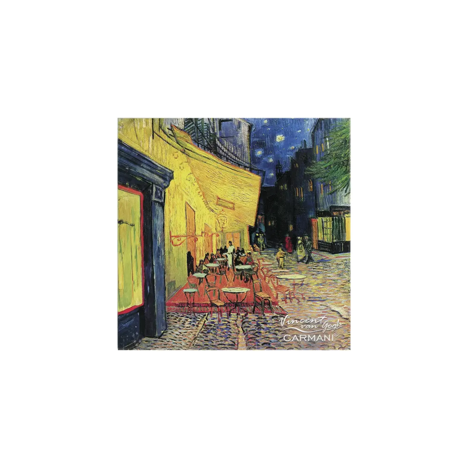 Zanurz się w atmosferze nocnej kawiarni w Arles z podkładką szklaną CARMANI, inspirowaną jednym z najbardziej rozpoznawalnych dzieł Vincenta van Gogha – „Taras kawiarni w nocy” (1888).