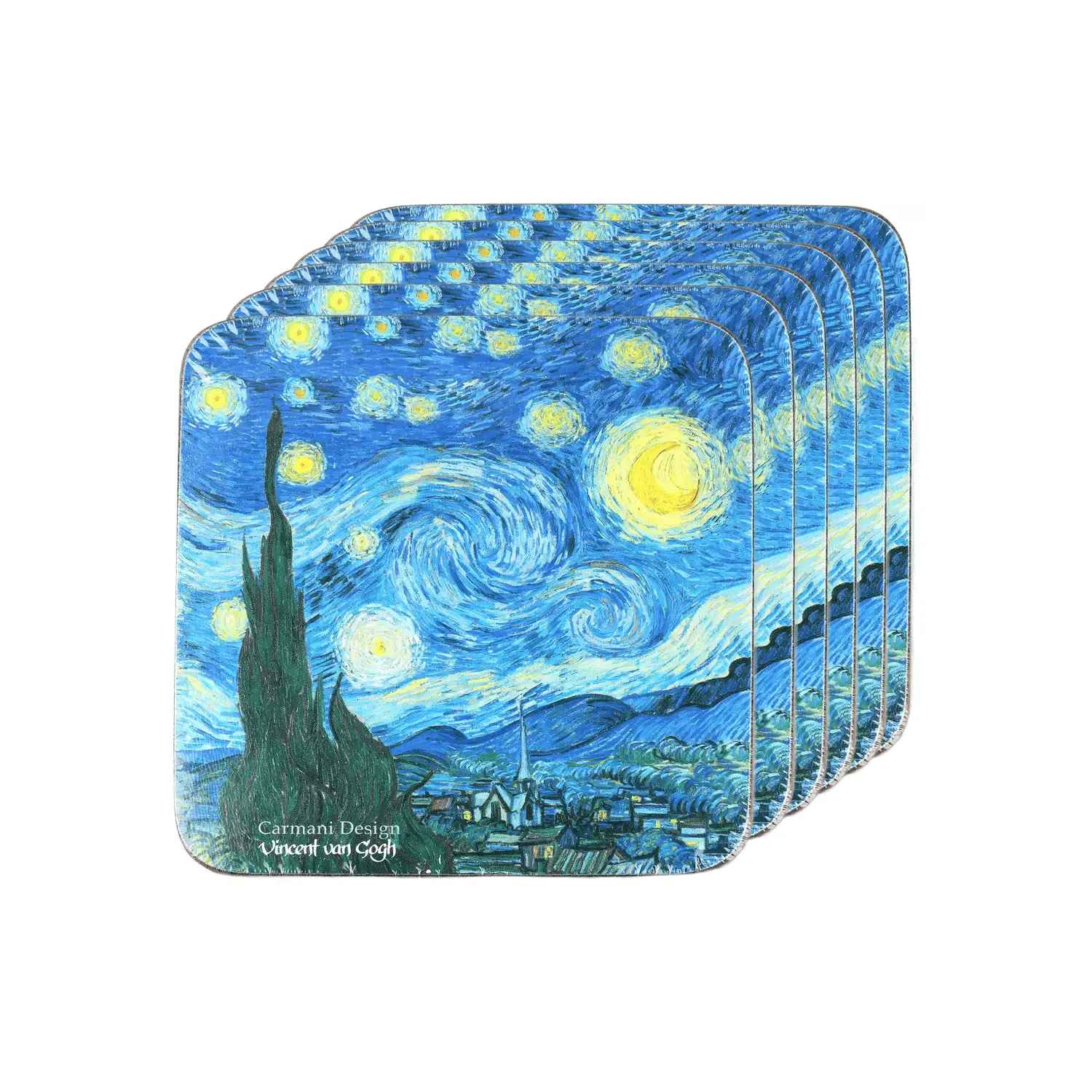 Podkładka szklana GWIAŹDZISTA NOC inspirowana V. van Goghiem CARMANI 11,5x11,5 cm
