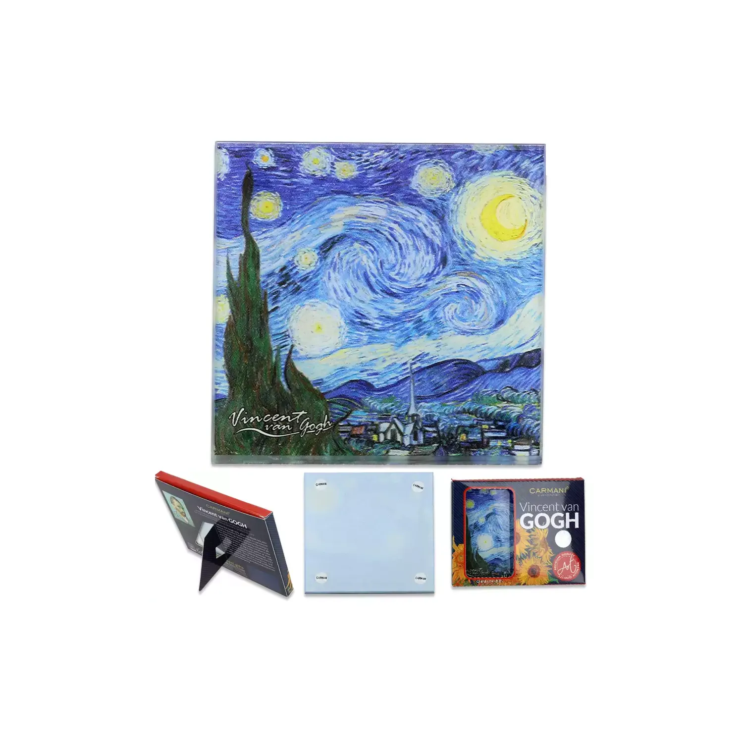 Podkładka szklana GWIAŹDZISTA NOC inspirowana V. van Goghiem CARMANI 11,5x11,5 cm