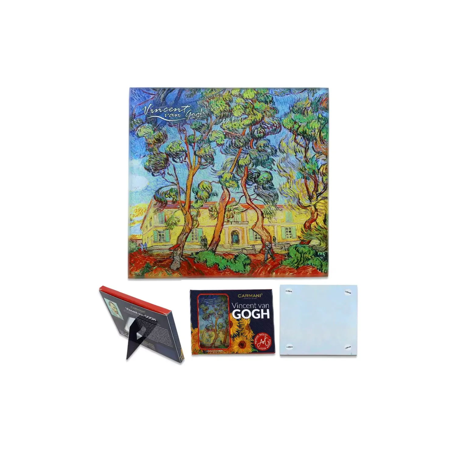 Podkładka szklana GWIAŹDZISTA NOC inspirowana V. van Goghiem CARMANI 11,5x11,5 cm