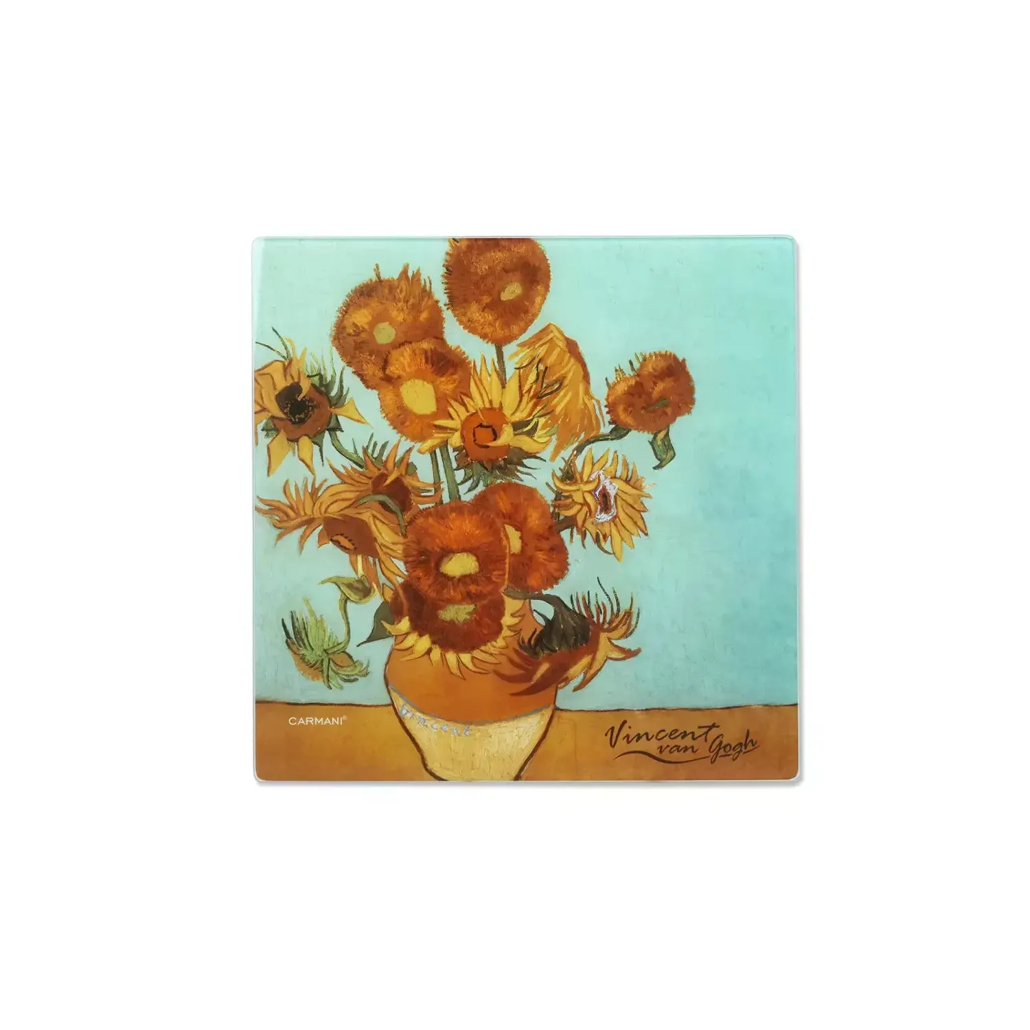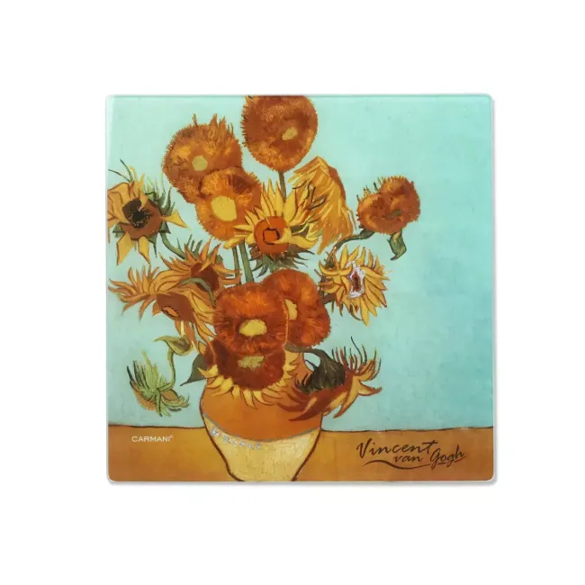 Szklana deska kuchenna z reprodukcją „Słoneczników” Vincenta van Gogha łączy funkcjonalność z dekoracyjnym charakterem. Wykonana z hartowanego szkła, odporna na wilgoć i łatwa w czyszczeniu, nie chłonie zapachów ani barwników. Sprawdzi się jako deska do krojenia, podkładka pod gorące naczynia lub stylowy element dekoracyjny kuchni.