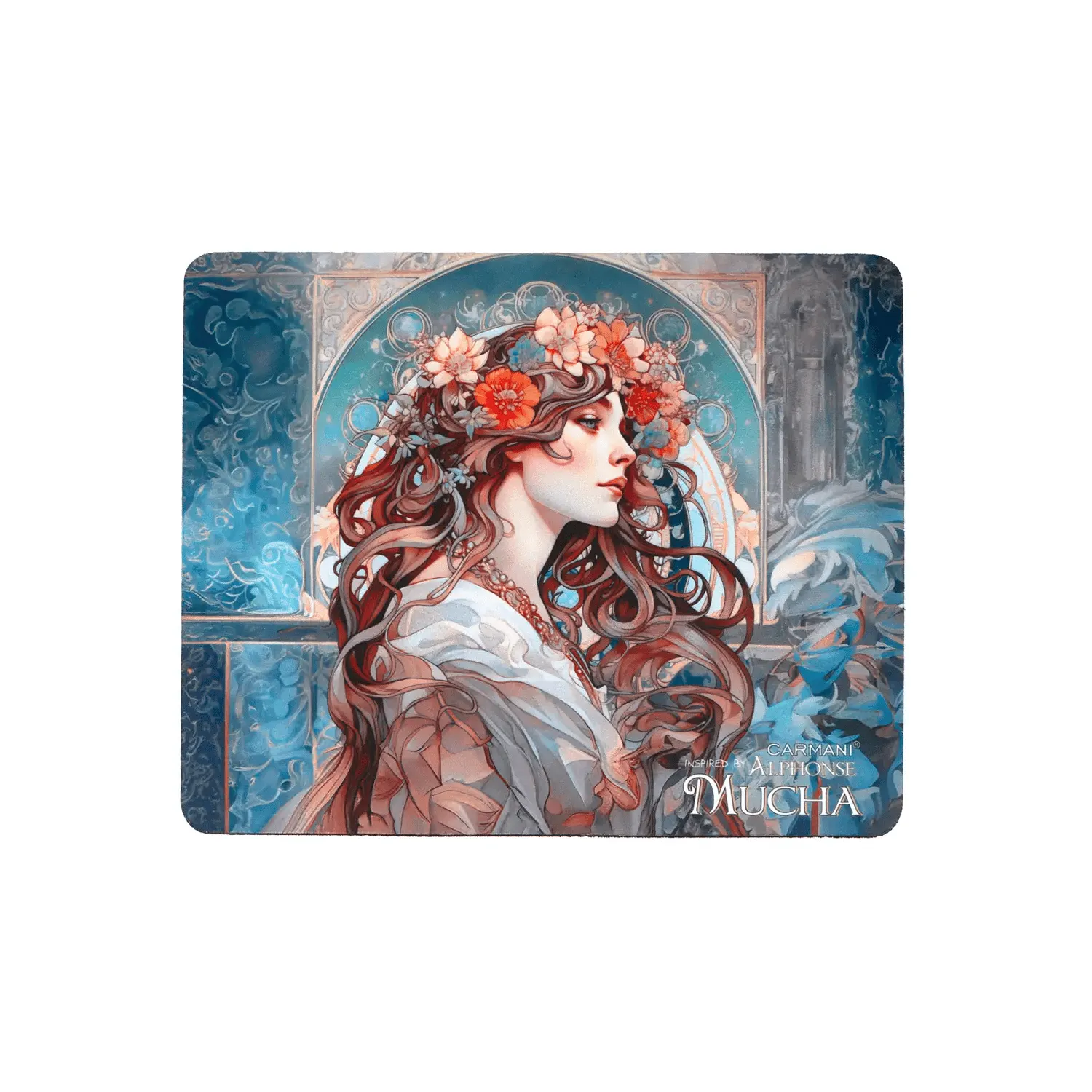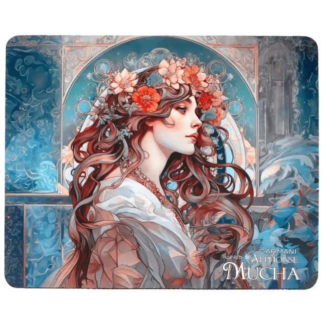 Podkładka pod mysz komputerową A. Mucha Winter (Zima) marki CARMANI to wyjątkowy akcent artystyczny na Twoim biurku. Wzór inspirowany obrazem „Winter” (Zima) z serii „Cztery pory roku” (Les Saisons, 1896) autorstwa Alfonsa Muchy zachwyca subtelną kolorystyką i secesyjną delikatnością. Gładka powierzchnia zapewnia idealny ślizg myszy, a antypoślizgowy spód gwarantuje stabilność. To połączenie funkcjonalności i piękna — praktyczne akcesorium, które dodaje wnętrzu stylu i harmonii.