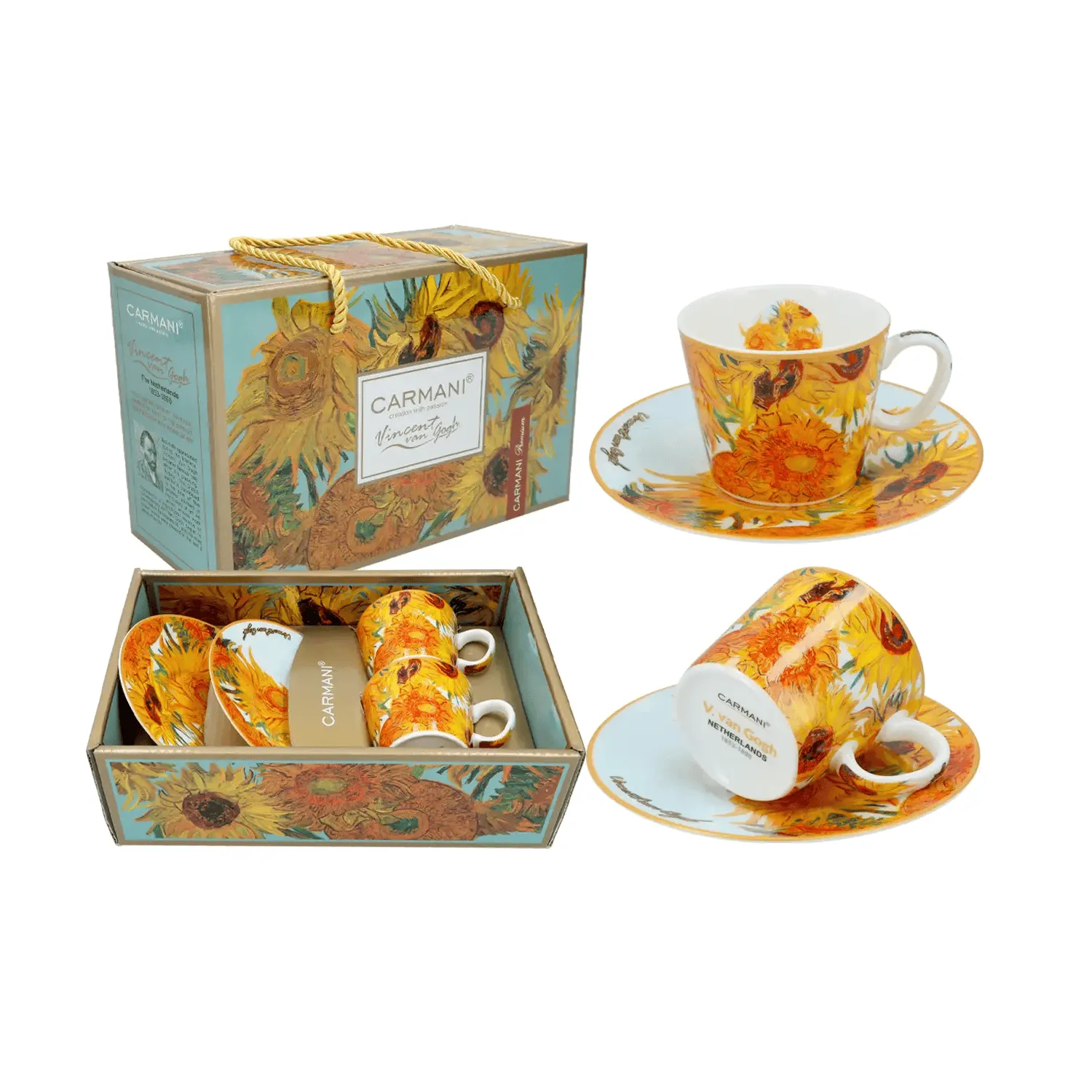 Zacznij dzień z energią i elegancją dzięki kompletowi 2 filiżanek espresso Słoneczniki marki CARMANI, inspirowanemu jednym z najsłynniejszych dzieł Vincenta van Gogha.