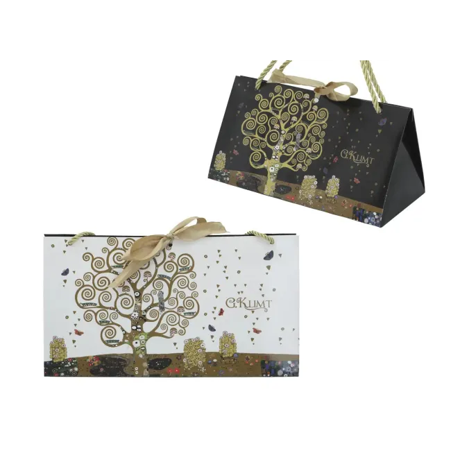 Elegancka torebka prezentowa inspirowana twórczością Gustava Klimta „Drzewo życia” to stylowy sposób na zapakowanie upominku. Oryginalny, trójkątny kształt oraz złote, dekoracyjne detale sprawiają, że już samo opakowanie robi wyjątkowe wrażenie. Idealna do prezentów premium, drobnych upominków i eleganckich zestawów. Podkreśla wartość zawartości i nadaje jej luksusowy charakter.