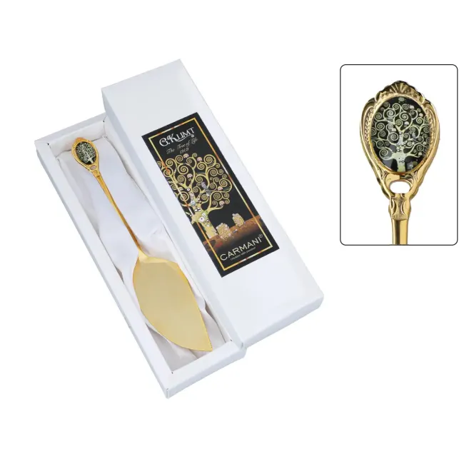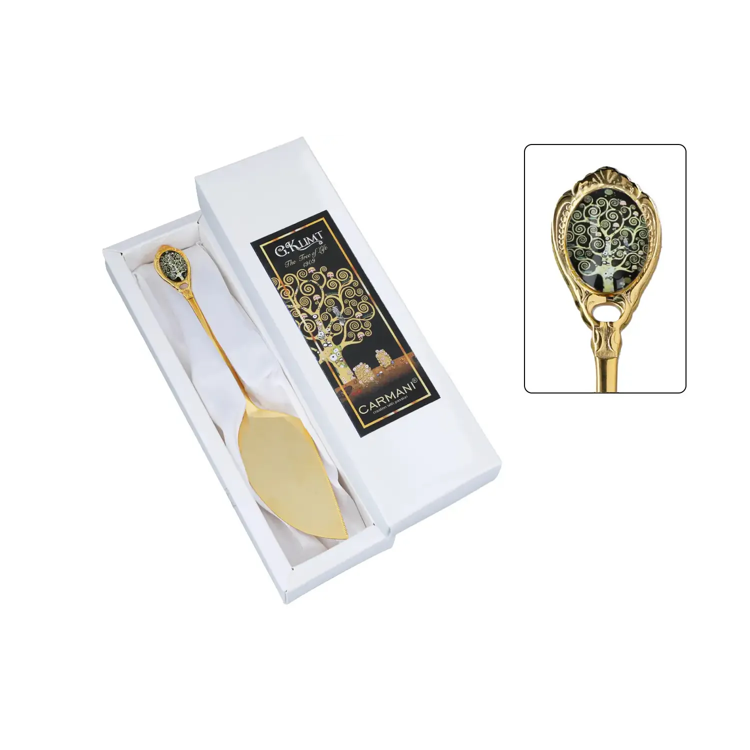Łopatka do ciasta Carmani inspirowana motywem „Drzewo życia” Gustava Klimta to wyjątkowy element, który łączy użytkową funkcję z artystycznym wyrazem.