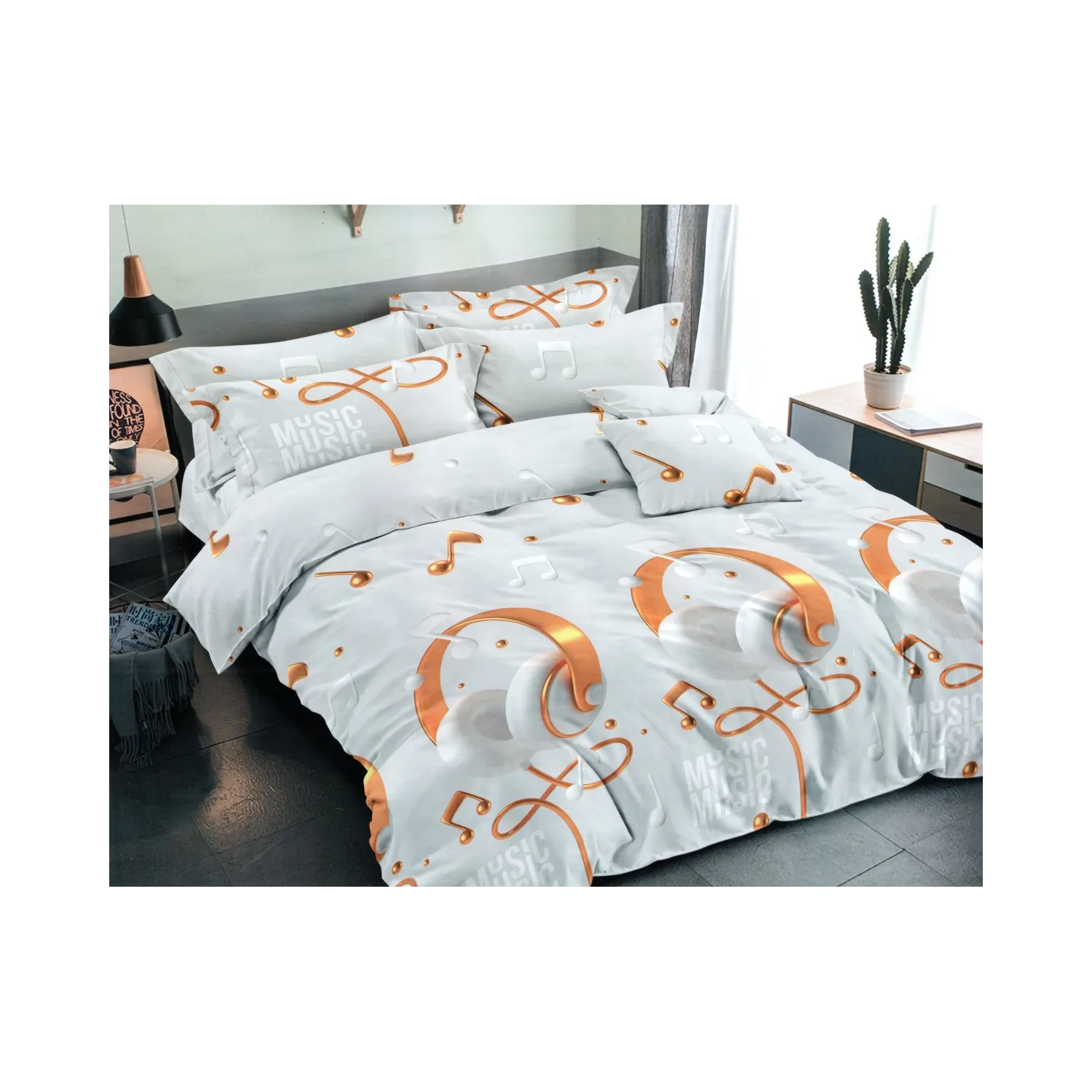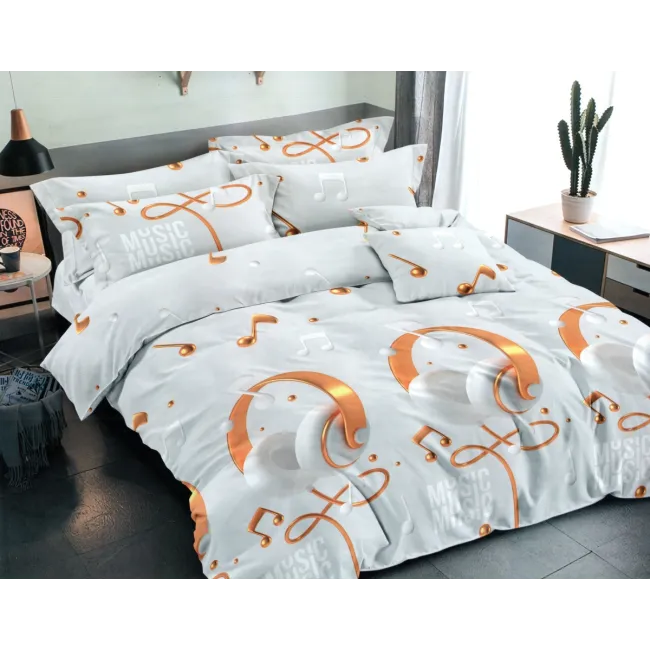 Ten komplet to połączenie wysokiej jakości satyny bawełnianej i nowoczesnego wzornictwa inspirowanego muzyką. Delikatny połysk tkaniny oraz nadruk 3D w odcieniach bieli, szarości i złota sprawiają, że pościel wygląda elegancko i wyjątkowo.