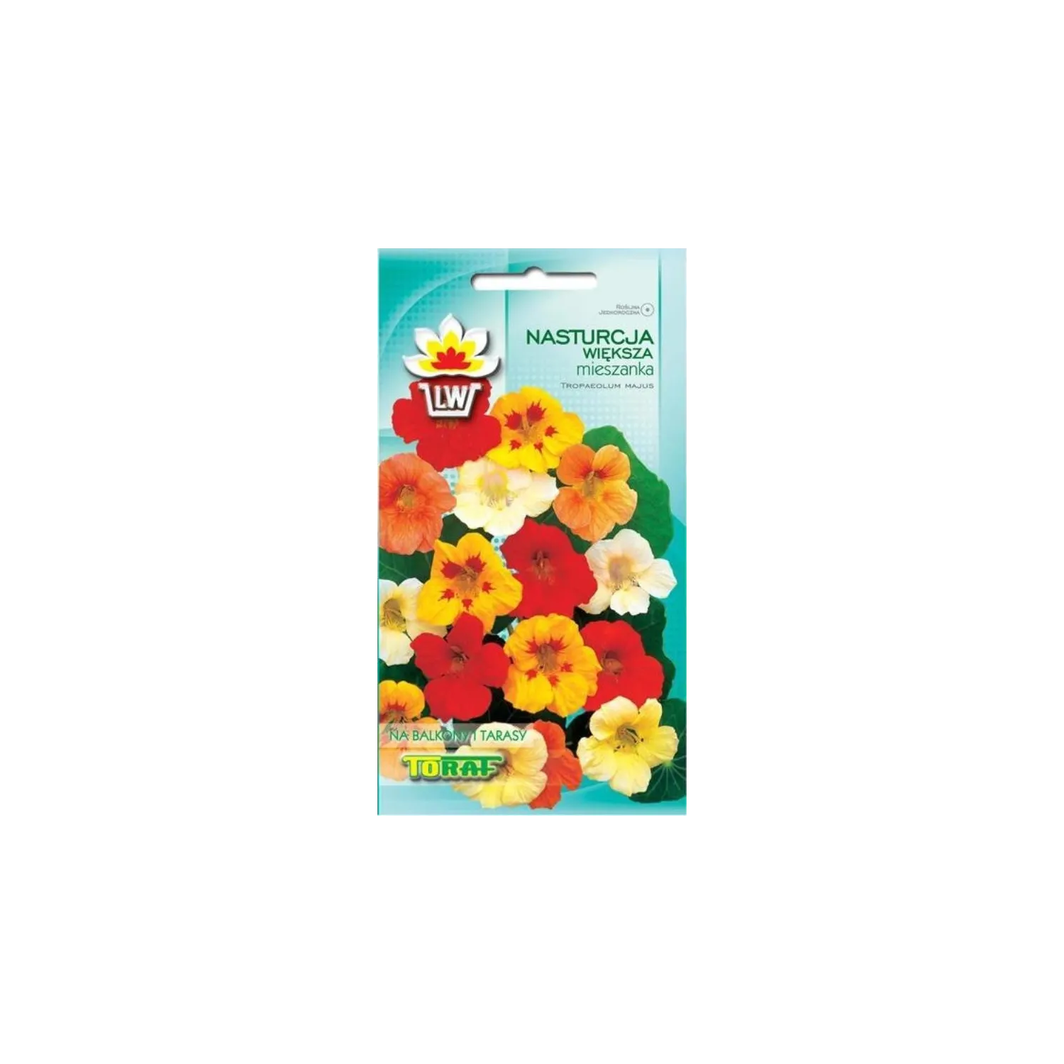 Roślina jednoroczna o giętkich, lekko płożących się pędach. Kwiaty w odcieniach pomarańczowego i żółtego. Polecana do okrywania murków, altan do pojemników na balkonach i tarasach. Kwiaty są jadalne i zawierają dużo witaminy C. Młode nasiona używane są jako dodatek smakowy do sałatek. Wysokość 200-300 cm. Kwitnie od VI do X. Wysiew nasion wprost do gruntu w IV-V. Udaję się na każdej glebie ogrodowej.