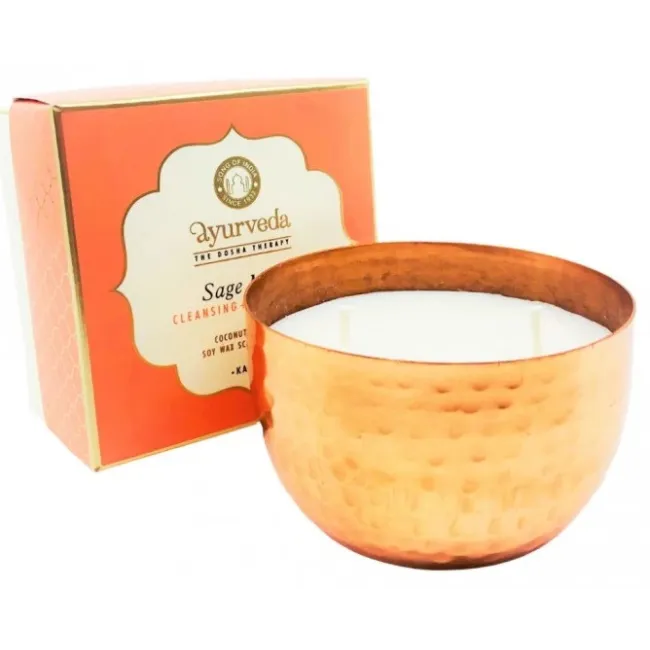Luksusowa świeca ajurwedyjska Veda – Szałwia & Mięta (Kapha) marki Song of India to połączenie aromaterapii, rzemiosła i tradycji Ajurwedy. Wykonana z naturalnego wosku sojowego i oleju kokosowego, zamknięta w ręcznie kutym, miedzianym słoju, wprowadza do wnętrza świeży, oczyszczający zapach. Ziemista nuta świętej szałwii pomaga oczyścić przestrzeń, a chłodząca mięta dodaje energii i orzeźwienia. Świeca została stworzona z myślą o równoważeniu doshy Kapha, wspierając lekkość, koncentrację i harmonię. Idealna do codziennego relaksu, medytacji oraz jako elegancki element wystroju wnętrza.