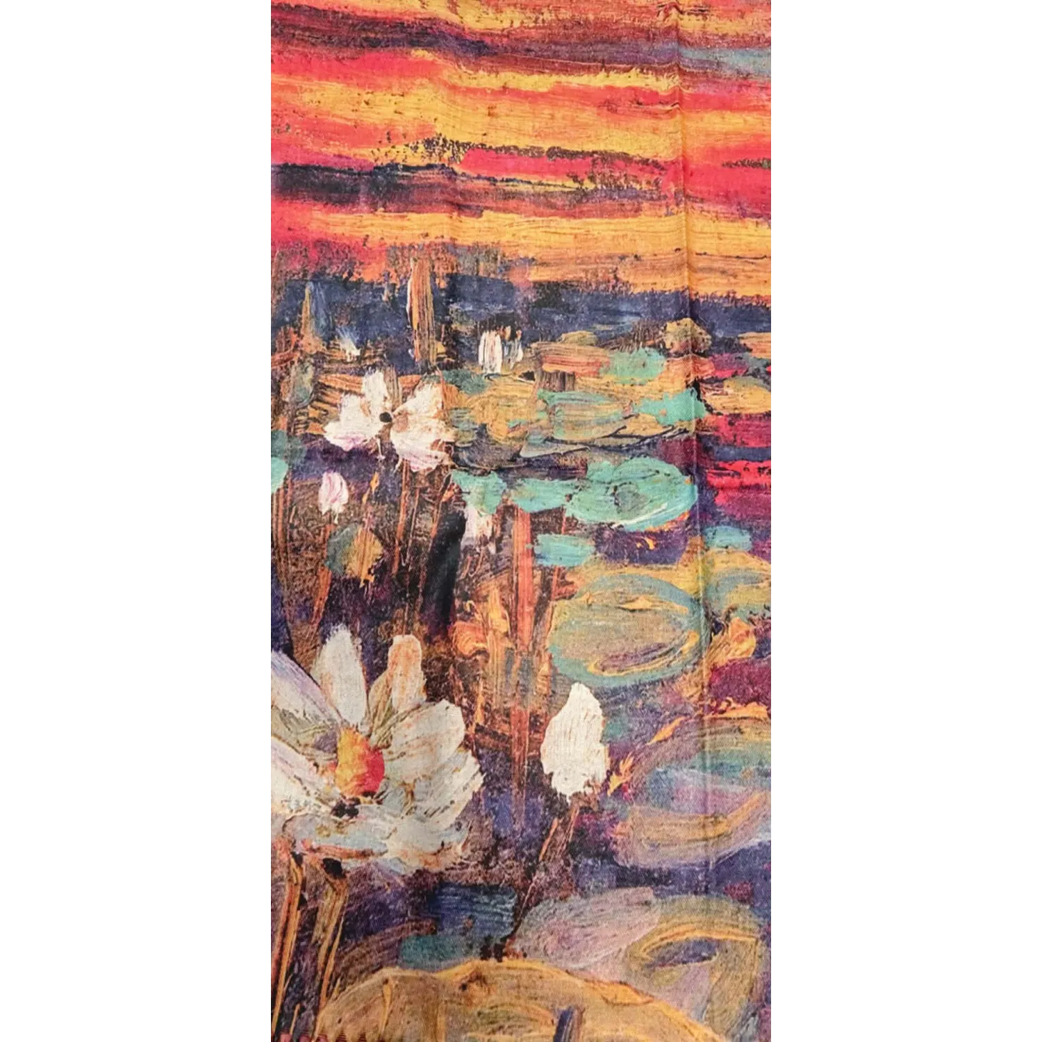 Szal Lilie Wodne – impresjonistyczna kompozycja w stylu Claude’a Moneta 200×70